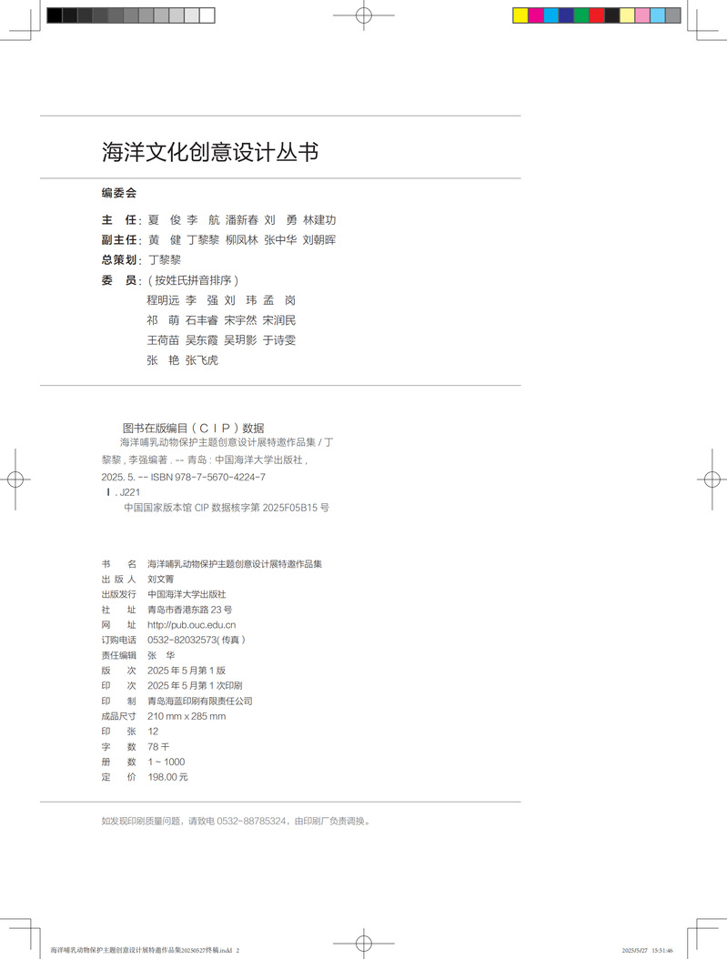 党的二十届三中全会着重指出,需推动人与自然和谐共生。为此,为深化海洋哺乳动物的科学普及,引导公众树立海洋生态文明理念,全国大学生海洋文化创意大赛以此为主题向全球设计师发出诚挚邀请,邀请大家围绕中华白海豚、斑海豹、布氏鲸、东亚江豚等海洋哺乳动物的保护主题,开展创意设计创作。本书围绕海洋哺乳动物保护主题,面向全国征集参赛作品,此次将大赛特邀作品收集成册出版,一方面留作赛事资料,另一方面作为对此领域感兴趣的社会大众及相关人员参考。