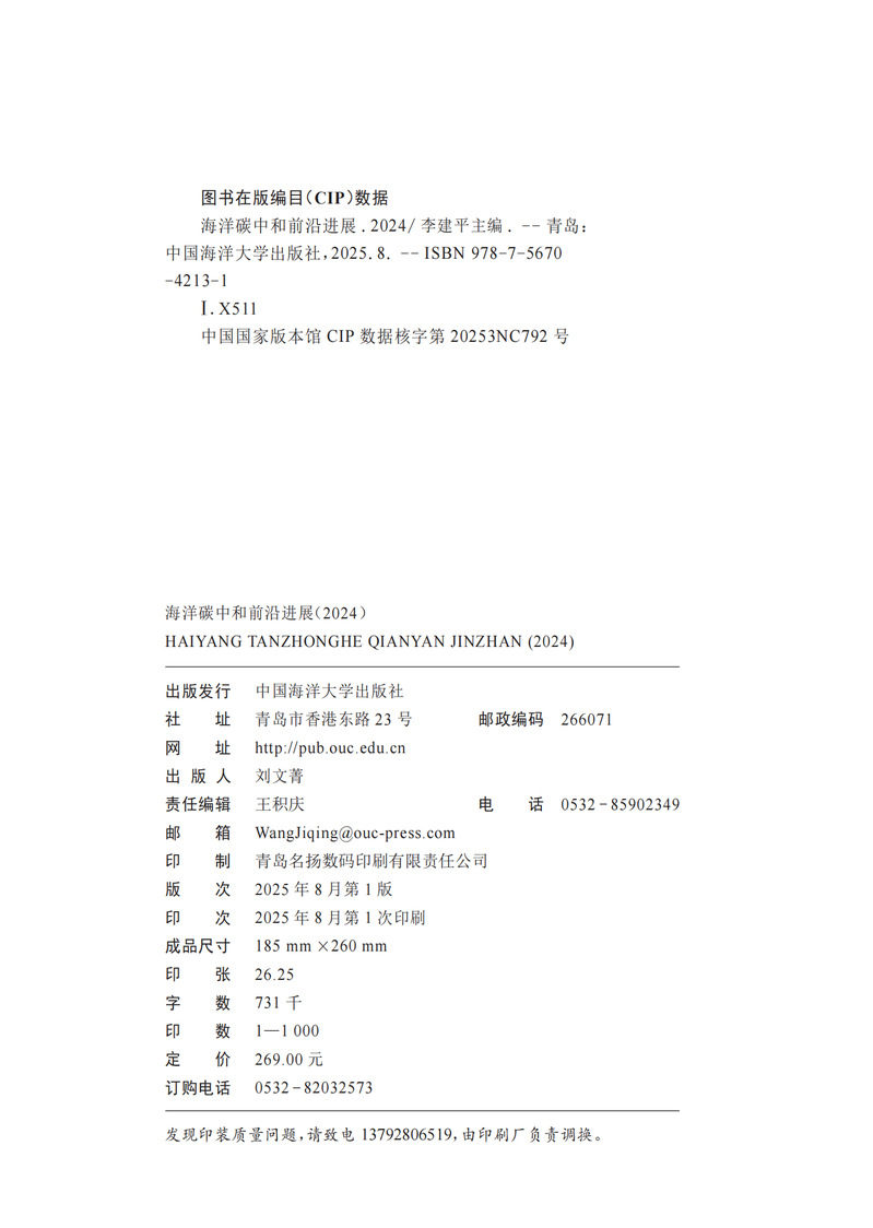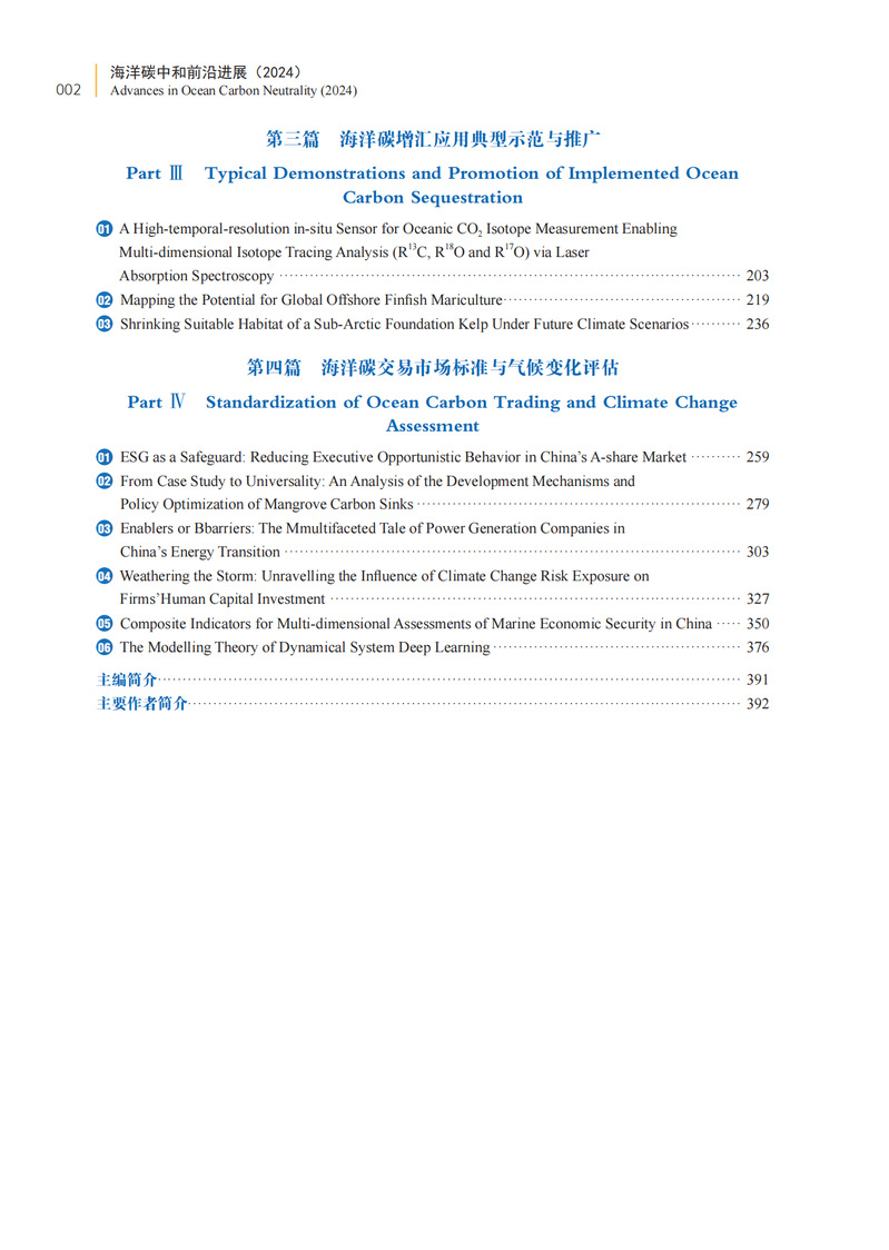 海洋碳中和是一个新兴的研究领域,相关成果和技术不断涌现,亟待总结和交流。本书精选了中国海洋大学海洋碳中和中心2024年发表的高水平学术成果,分为“海洋碳增汇关键过程与理论创新”“非碳能源替代方案与关键技术”“海洋碳增汇应用典型示范与推广”“海洋碳交易市场标准与气候变化评估”四大版块,本书能为关注全球气候变化问题的业内人士、专家学者提供一些新的视角,带来一些新的启示,同时也让更多的人了解与关注海洋碳中和。