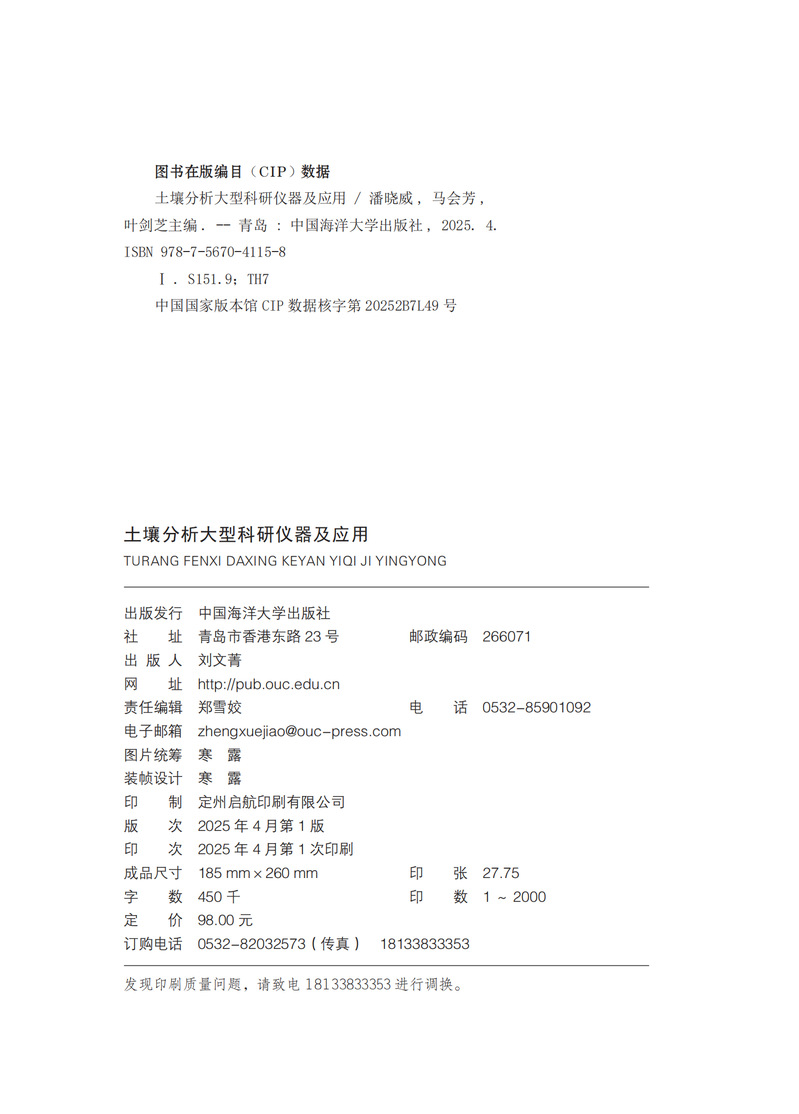本书稿依托中国热带农业科学院农产品加工研究所现有大型科研仪器,系统地介绍液相色谱仪、气相色谱仪、电感耦合等离子质谱仪、电感耦合等离子体光谱仪液相色谱仪、原子吸收光谱仪等土壤分析仪器,主要包括发展历程、工作原理、结构组成、方法应用、维护保养及故障排除等方面。本书旨在为从事土壤科学研究、农业技术推广、检验检测等领域的专业技术人员、科研人员及高等院校师生提供一本权威、实用的参考书。书稿具有一定的实用价值。
