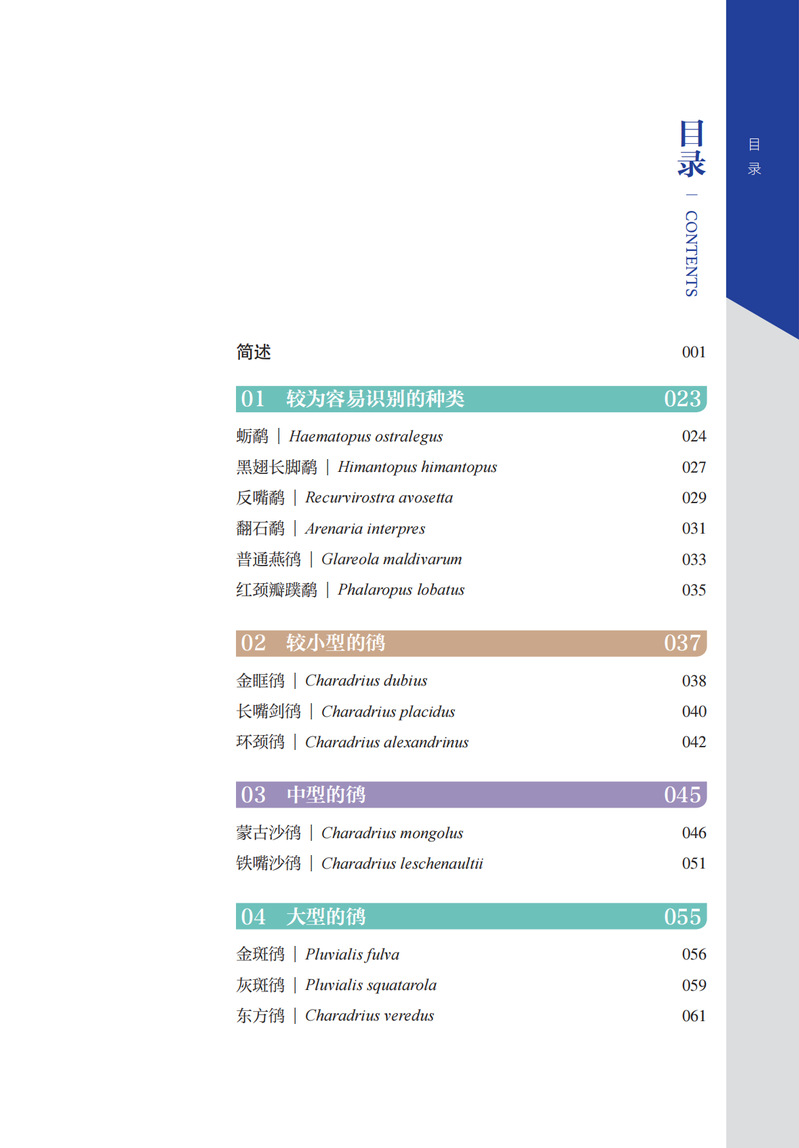 本书面向已初步了解鸻鹬类鸟类,但希望进一步提升辨识能力的观鸟爱好者。书中首先从体型、羽色、行为等不同的特征出发,将鸻鹬类划分为若干群组,帮助读者建立系统化的分类框架。在明确分组的基础上,重点解析各组内相似鸟种在不同年龄阶段、不同羽色时期的鉴别特征。系统介绍了鸻鹬类换羽相关的生命周期,通过深入浅出的讲解,读者不仅能掌握关键识别要点,更能理解鸟类换羽规律与羽色变化的内在关联,从而在野外观察中更准确地辨识各类鸻鹬。