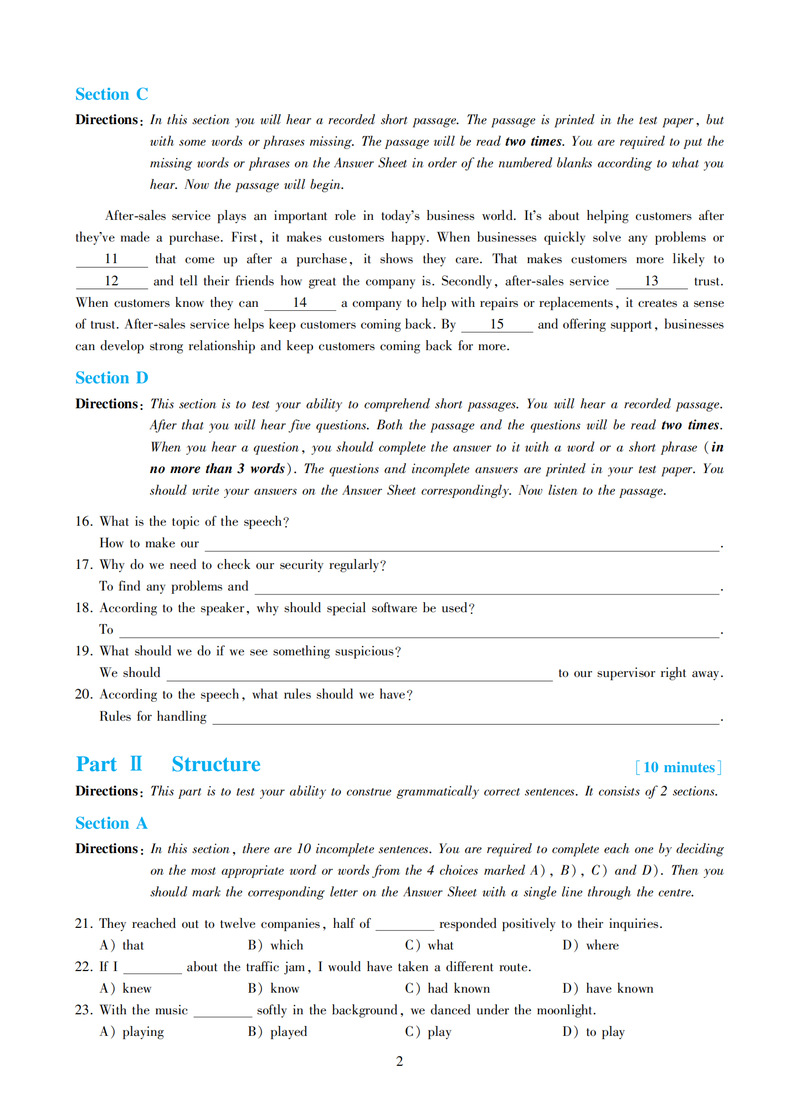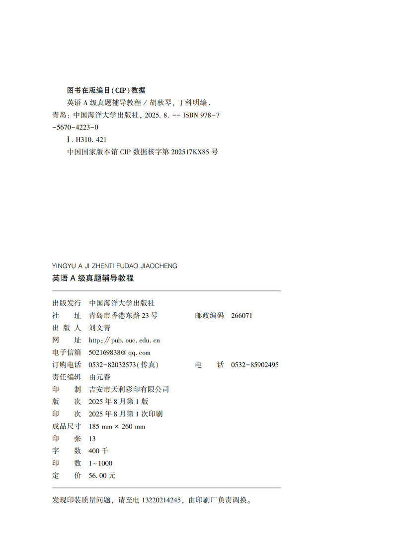 “高等学校英语应用能力考试”于2000年开始在全国正式实施,2014年12月份开始正式考试新题型,参加此类考试的考生与年俱增。为了帮助高职高专学生了解考试要求和内容,并在考前熟悉所有题型的内容和难度,使考生顺利通过“高等学校英语应用能力考试”A、B级水平的考试,我们专门按新考试大纲编写了这套《英语A级真题辅导教程》。本书收录了最近几年考试真题试卷10套。本书在编写过程中遵循国家教育部高等教育司颁布的《高等学校英语应用能力考试大纲》(2014年新大纲)和《高职高专教育英语课程教学基本要求》(2009年)。