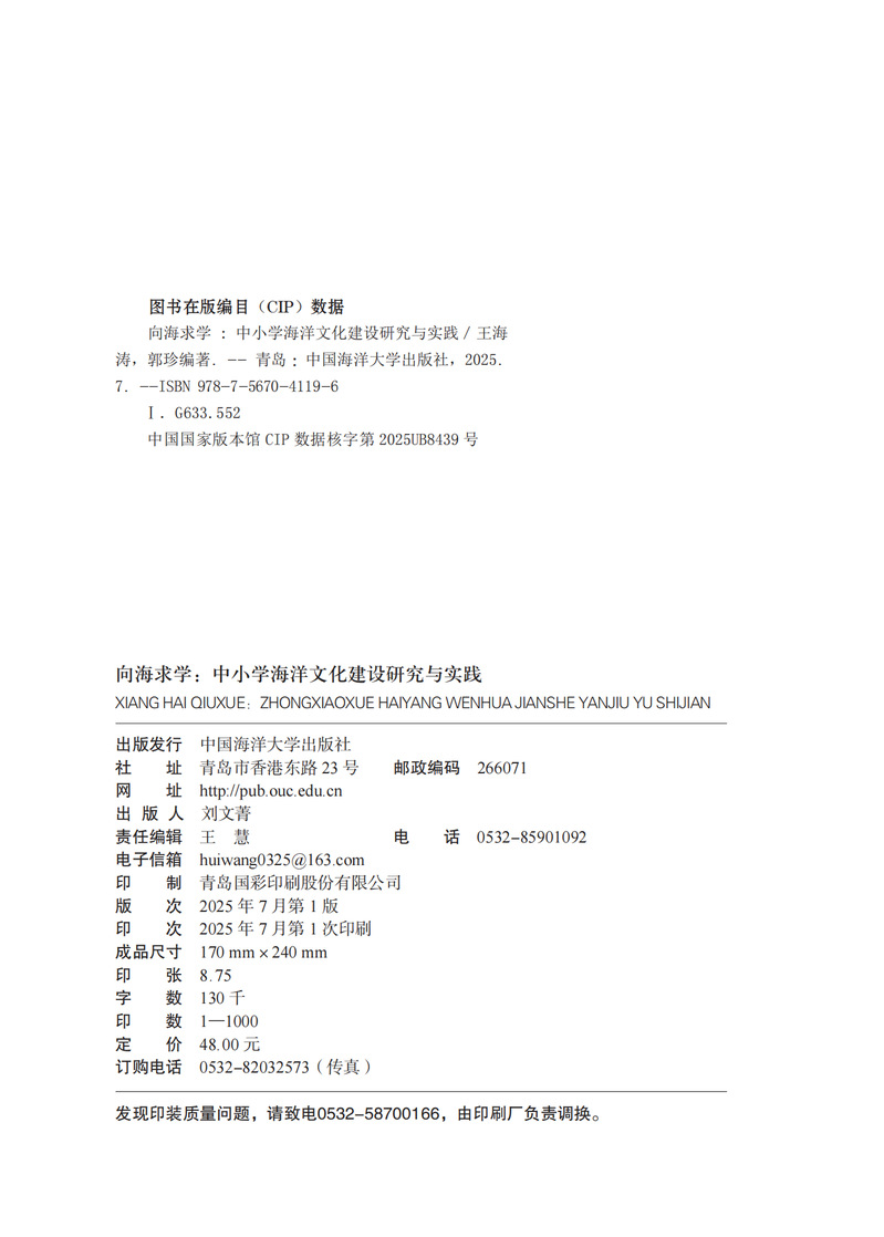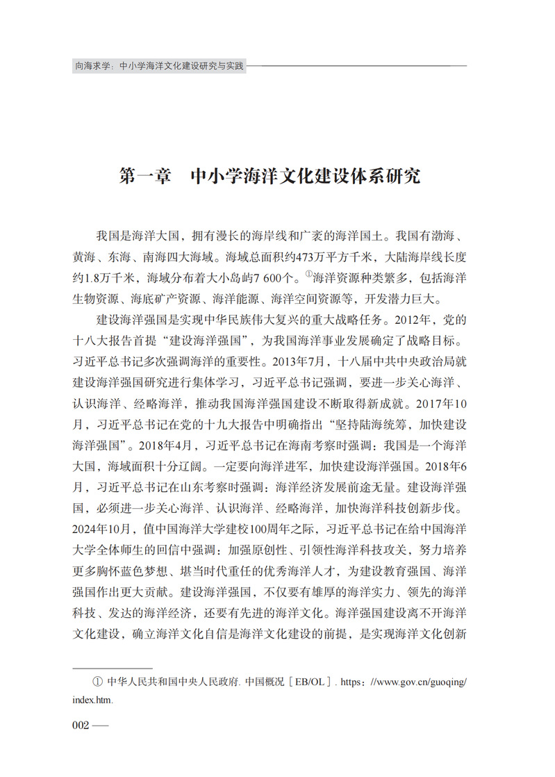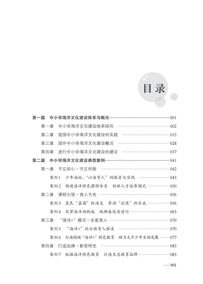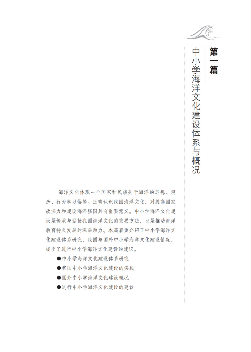 学校海洋文化建设是继承与发展我国海洋文化的重要手段,也是推动海洋教育持久发展的深层动力。本书分两部分,第一部分为中小学海洋文化建设研究,面向中小学海洋文化教育的研究者与一线工作者,从中小学海洋文化建设体系、国内外中小学海洋文化建设概况、我国中小学海洋文化建设等方面对中小学海洋文化建设展开研究。第二部分为中小学海洋文化建设实例,从全国遴选13个学校案例,分享当前中小学海洋文化建设的优秀经验,提出进行海洋文化建设的途径与方法。