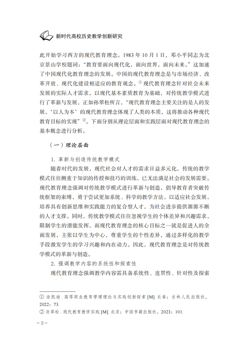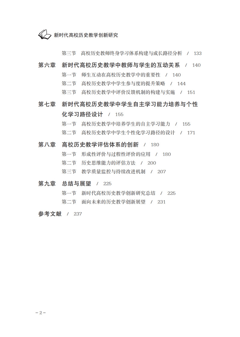 《新时代高校历史教学创新研究》是一部深入探讨高校历史教学改革的学术专著,旨在通过创新思维培养、自主课堂教学、信息技术与历史教学深度融合等新型教学模式,引领高校历史教学的深刻变革。书中核心聚焦于教学模式与方法的创新性转变,提出了构建以学生为中心的自主课堂,利用信息技术丰富教学手段,促进学生主动学习与探究,培养其创新思维与批判性思维能力。同时,本书还深入探讨了历史教学评价机制的革新,倡导多元化、过程性评价,以全面评估学生的知识掌握、思维能力和人文素养。