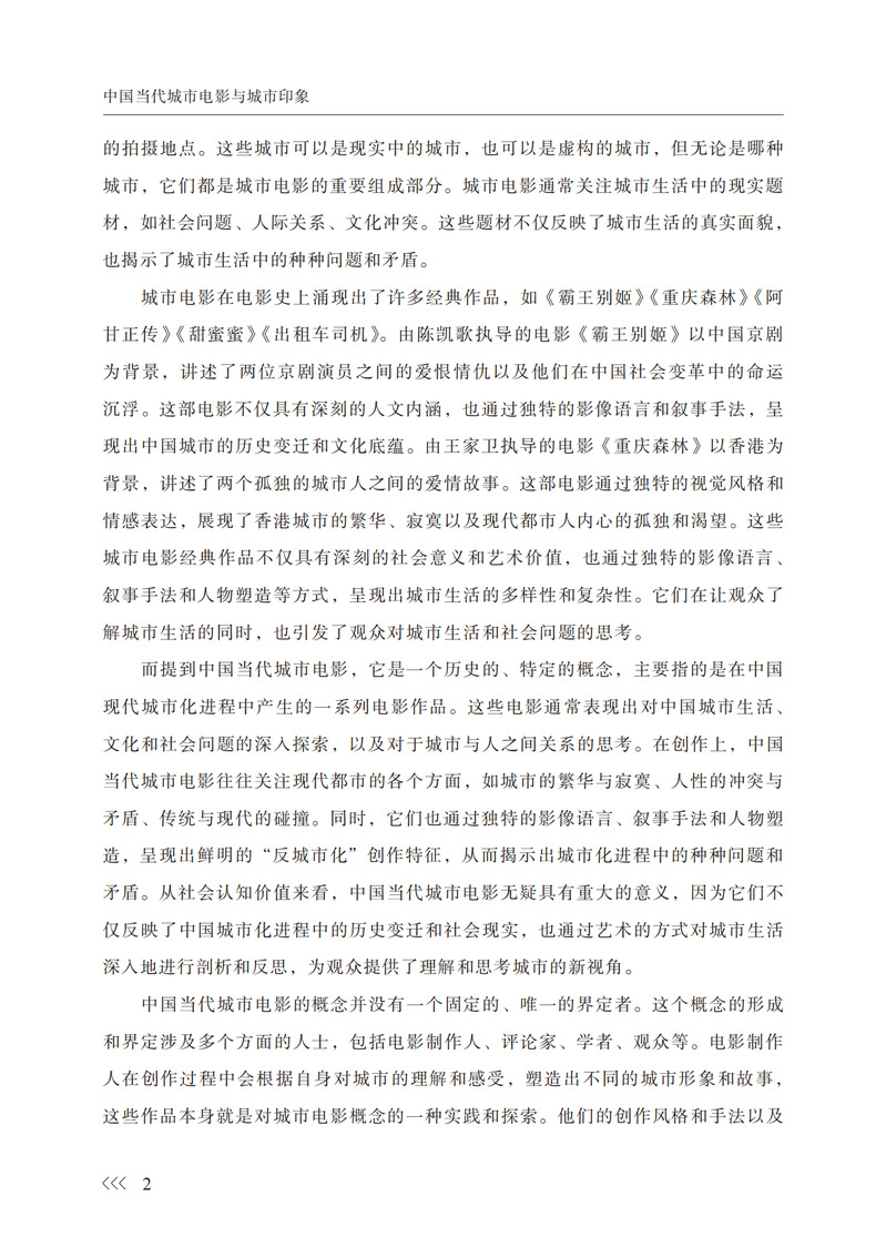 《中国当代城市电影与城市印象》基于中国当代电影这一影像艺术文本,对中华人民共和国成立以来,特别是改革开放以来中国城市电影的发展脉络进行历史梳理,挖掘城市这一影像符号在空间呈现、空间想象、空间叙事和空间审美中的变化,通过在这种现代性转变中找寻中国独特影像艺术特征,以及其价值与意义,进而帮助中国城市打造城市文化名片,展示新面貌。《中国当代城市电影与城市印象》对中国社会城市化进程和现代转型的影像梳理,有助于城市形象和国家形象的宣传和传播。
