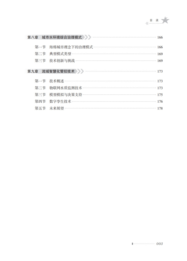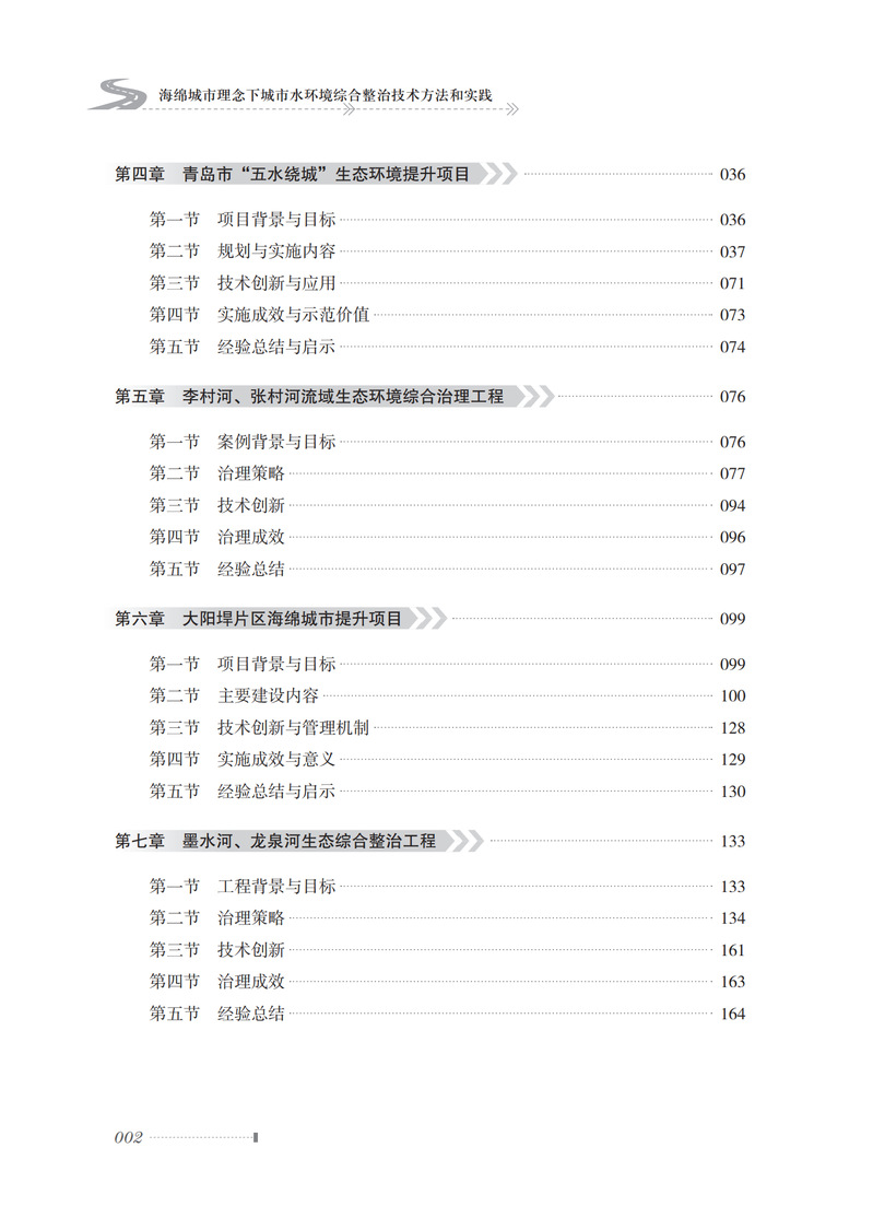 本书分为三篇,第一篇城市水环境综合整治技术理论方法体系,包含第一章 海绵城市,海绵城市的缘起,海绵城市在我国的发展;第二章城市水环境,城市水资源第二节城市水环境,城市水生态, “三水统筹”系统;第三章城市水环境综合治理技术,城市雨污分流与截污纳管,城市雨水资源化利用,再生水回用技术,水体修复与净化技术,生态恢复和景观构建技术;第二篇城市水环境综合整治典型案例,分为青岛市“五水绕城”生态环境提升项目,李村河和张村河流域生态环境综合治理工程,墨水河龙泉河生态综合整治工程,芜湖大阳垾海绵城市提升工程四章;第三篇总结与展望,包含城市水环境综合治理模式和流域智慧化管控技术两章。