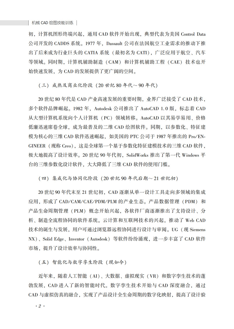 本书围绕机械、机电类行业实际工作中识读、绘制图形能力的要求,以学生职业生涯发展为先导,以职业需求为依据,以工作过程为基础,以能力训练为主线,从区域行业职业(岗位)分析入手,并结合目前中职教学实际情况,突出职业教育特色,力求职业技能的“够用、实用”。内容涵盖CAD绘图技巧、CAD基本指令与参数设置、CAD实训教学以及多媒体、案例教学任务驱动等教学方法在CAD中的应用,探索基于CAD能力培养的教学创新与改革。全书结构合理、针对性强,具有较强的专业性和实用性,对于提高CAD教学效果有较好的参考价值。