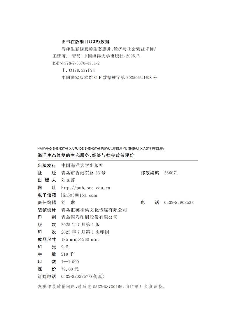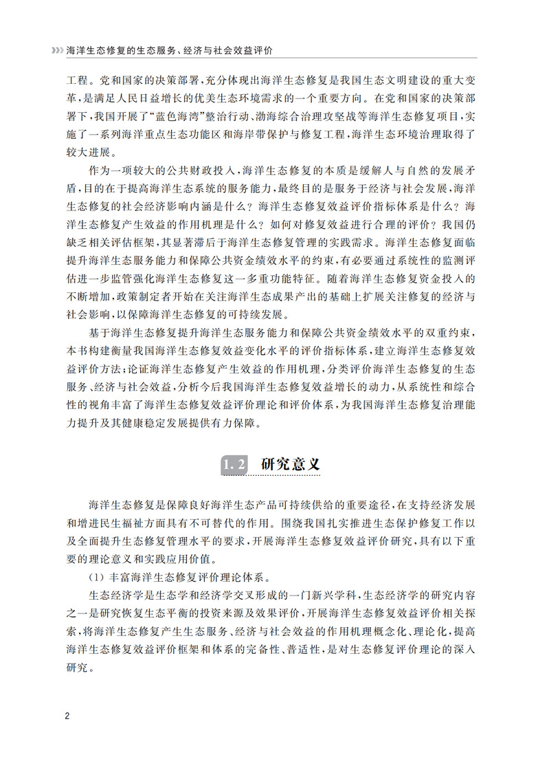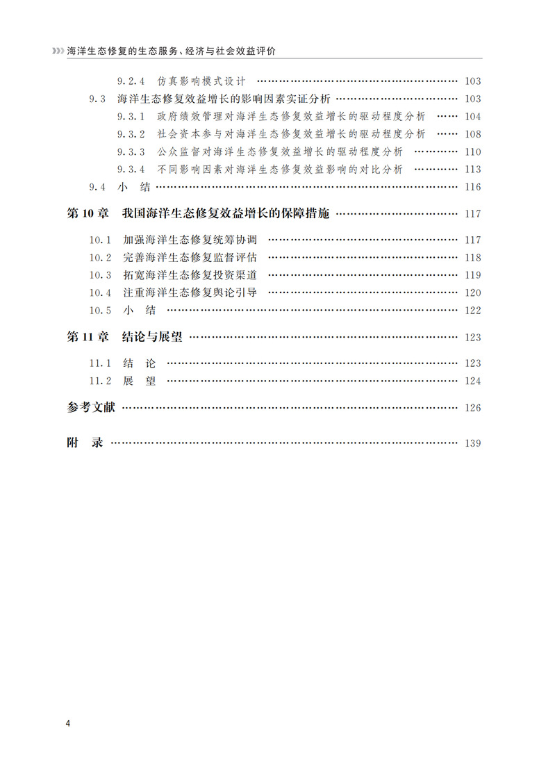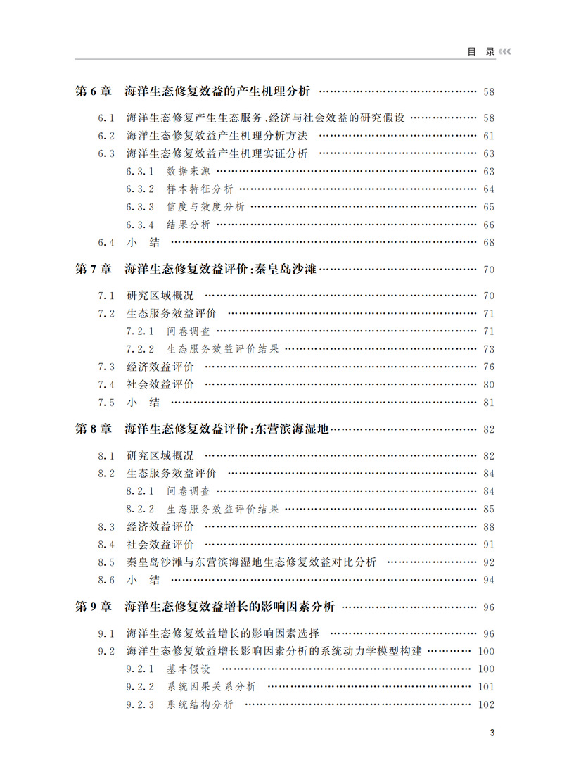 近年来,我国高度重视海洋生态修复,海洋生态环境治理取得较大进展。本书廓清了海洋生态修复生态服务、经济与社会效益的内涵与外延,构建了海洋生态修复效益评价指标体系,分别评价了秦皇岛沙滩和东营滨海湿地生态修复产生的生态服务、经济与社会效益,论证了海洋生态修复效益提升的保障政策,为我国海洋生态修复治理体系和治理能力现代化提升提供有力保障。本书可供海洋经济与管理专业的研究人员、管理人员及院校相关专业的学生参考、使用。