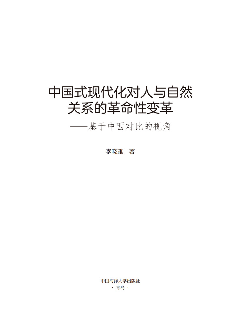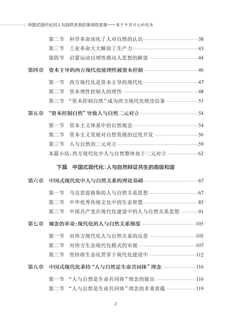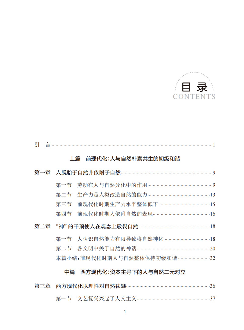 本书从中西对比中看中国式现代化对人与自然关系的变革,分上、中、下三篇。上篇是对前现代化人与自然朴素共生初级和谐的介绍。中篇是对西方现代化中资本主导下人与自然二元对立的阐释。下篇是对中国式现代化中人与自然辩证共生高级和谐的阐释,是本书重点,包括“中国式现代化人与自然关系的理论基础”“观念的革命:现代化的人与自然关系维度”“中国式现代化以‘人与自然生命共同体’跳出人与自然二元对立”“中国式现代化以‘人民至上’”超越‘资本至上’”“中国式现代化以‘绿色发展’超越‘黑色发展’”“中国式现代化以‘全球生态共治’超越‘生态帝国主义’”等内容。本书可供相关学者参阅。