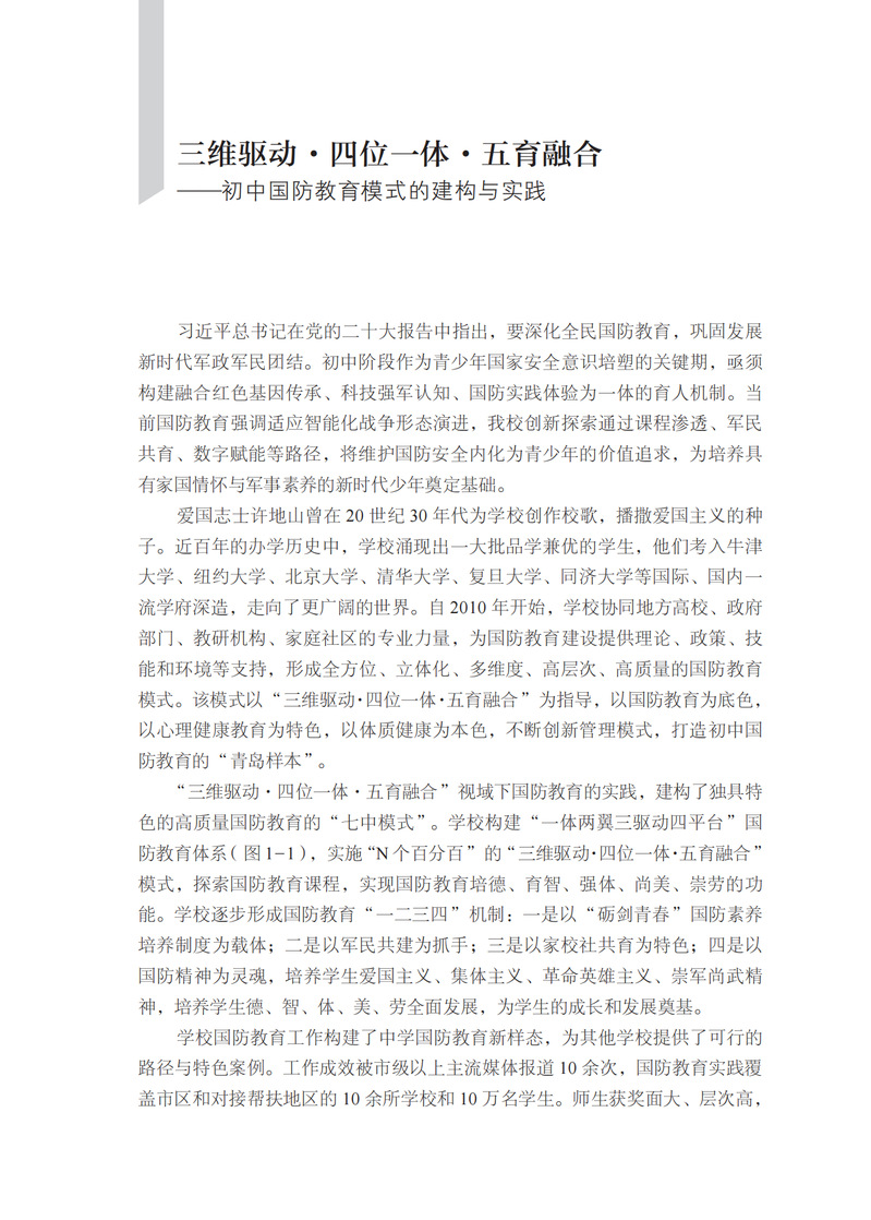 本书系统呈现了青岛七中在新时代育人模式上的创新探索。基于“三维驱动·四位一体·五育融合”的教育理念,构建了以家国情怀培育为内核的特色育人体系,形成了具有示范价值的实践样本。全书以“海之魂·薪火”课程系列为主线,详细阐述了如何将爱国主义教育有机融入学科教学和校园生活。从革命历史场馆的沉浸式研学,到海洋科技实践课程;从《铸盾青春》校本课程开发,到“砺剑计划”常态化培养模式;从VR虚拟场景体验,到团队协作训练等特色活动,全面展示了特色育人与德育、智育、体育、美育、劳育的深度融合路径。