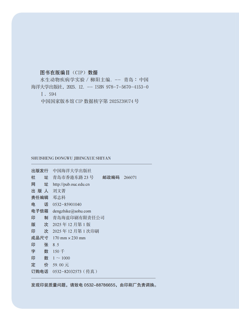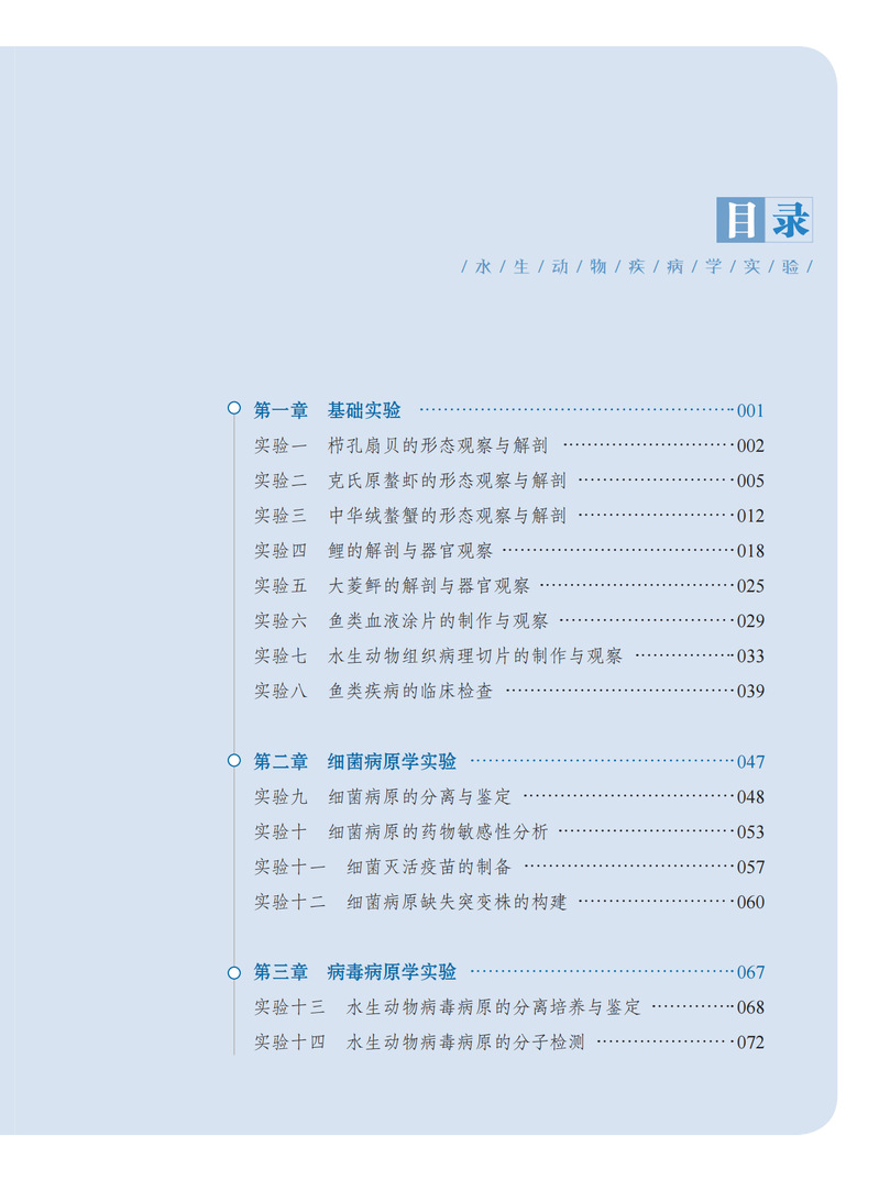 全书分五部分,包括基础实验、细菌病原学实验、病毒病原学实验、寄生虫学实验、真菌病原学实验。讲解了栉孔扇贝、克氏原螯虾、中华绒螯蟹、大菱鲆、三疣梭子蟹等的形态观察与解剖,对细菌病、病毒病、寄生虫病等的分离与鉴定作了详细讲解,书中还涉及细菌病原的分离与鉴定、菌病原的药物敏感性分析、细菌灭活疫苗的制备与保护效果评价、细菌病原缺失突变株的构建、水生动物病毒病原的分子检测、鱼类病毒病组织浆灭活疫苗的制备与保护效果评价、水生动物病毒的分离培养与鉴定等前沿内容。
