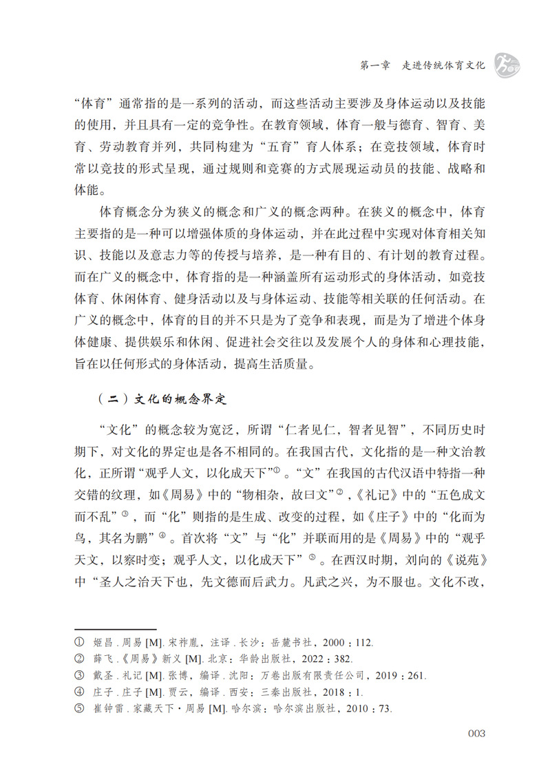 本书稿基于传统体育文化的内涵、分类、特征等理论,进一步对传统体育文化传承体系的构建进行了分析,并进一步从武术文化、运动养身文化、搏击文化等多个层面对传统体育文化的学练实践展开了探讨,最后从传播角度为切入点,对传统体育文化的多元传播路径以及发展进行了研究。本书图文并茂,注重理论与实践相结合,可供从事传统体育文化研究的相关人员作为参考用书使用,具有一定的学术价值和市场价值。
