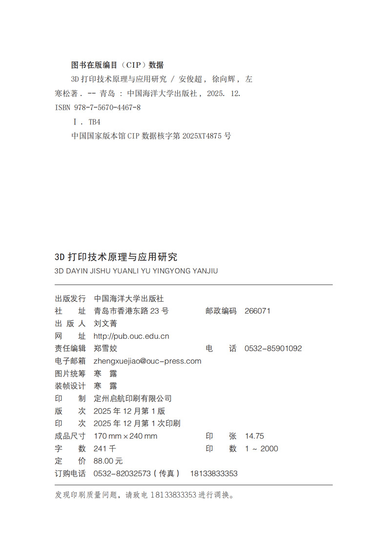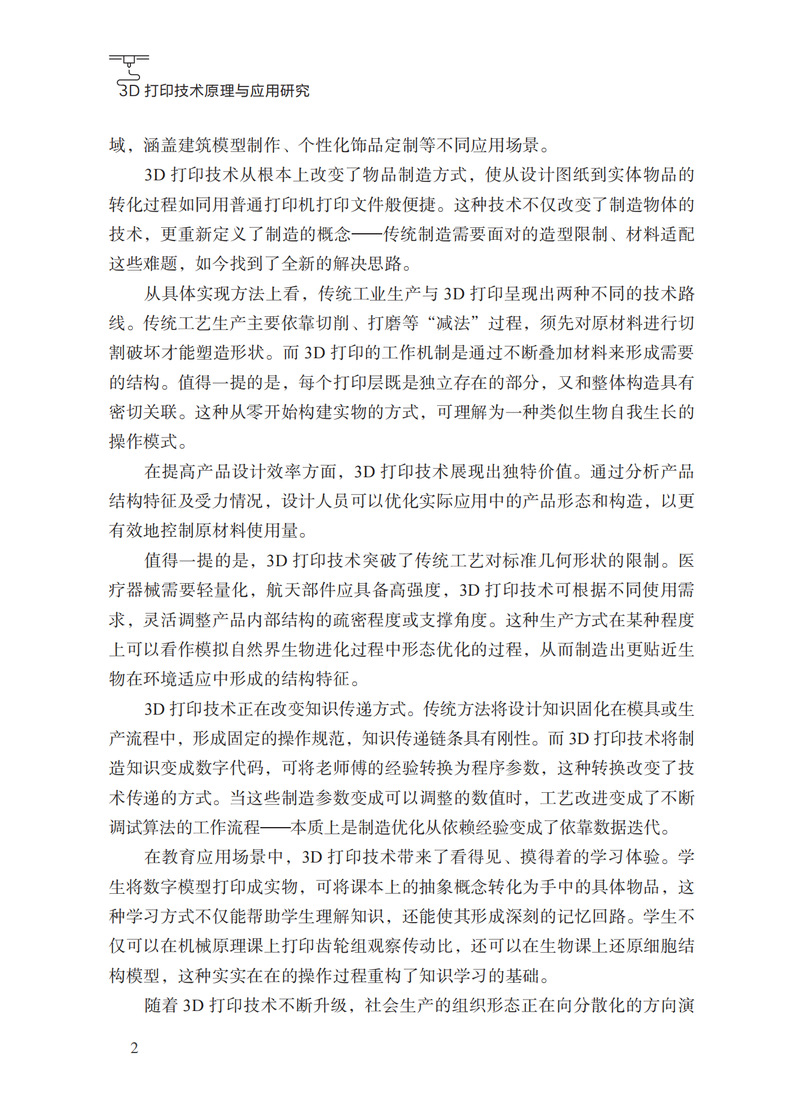 本书属于3D打印方面的著作,本学术著作首先从3D打印技术基本理论出发,在深度掌握3D打印技术概念与起源的基础上,进一步阐述了3D打印技术的意义与发展。其次,本书对3D打印原理与一般过程进行了分析,包括3D打印技术的分类、3D打印成型误差分析等。最后提出了3D打印的成型材料、桌面3D打印机的操作过程和实践。本书以理论研究为基础,力求对3D打印机进行全方位、立体化的综合评价,以期为3D打印的建设贡献力量。本书具有较强的应用价值,可供从事相关工作的人员作为参考用书使用。