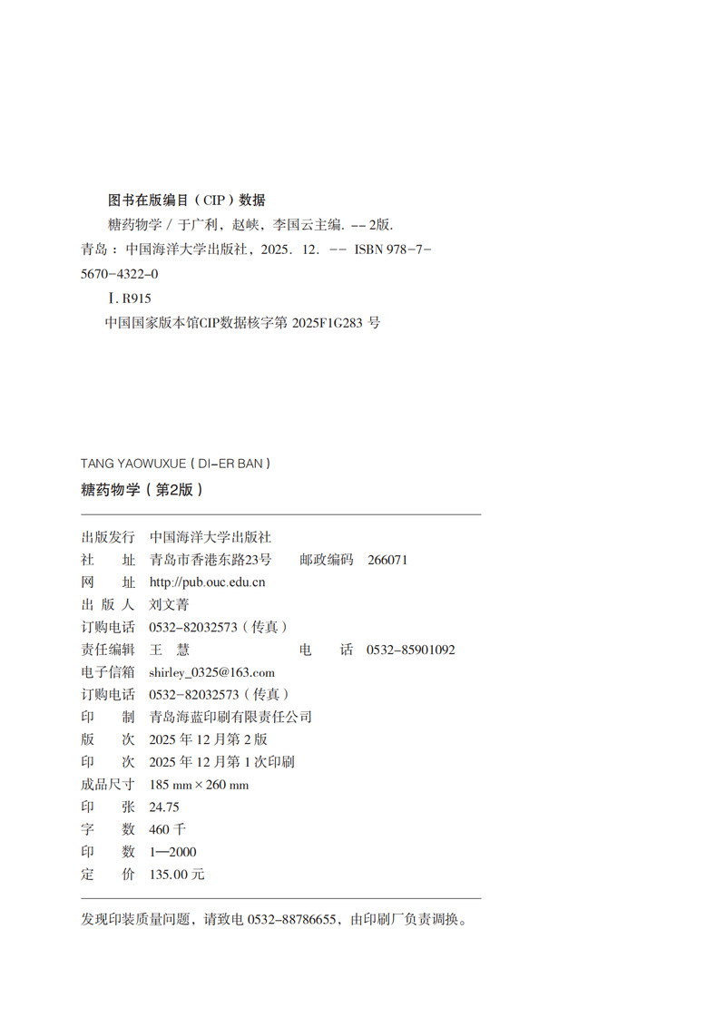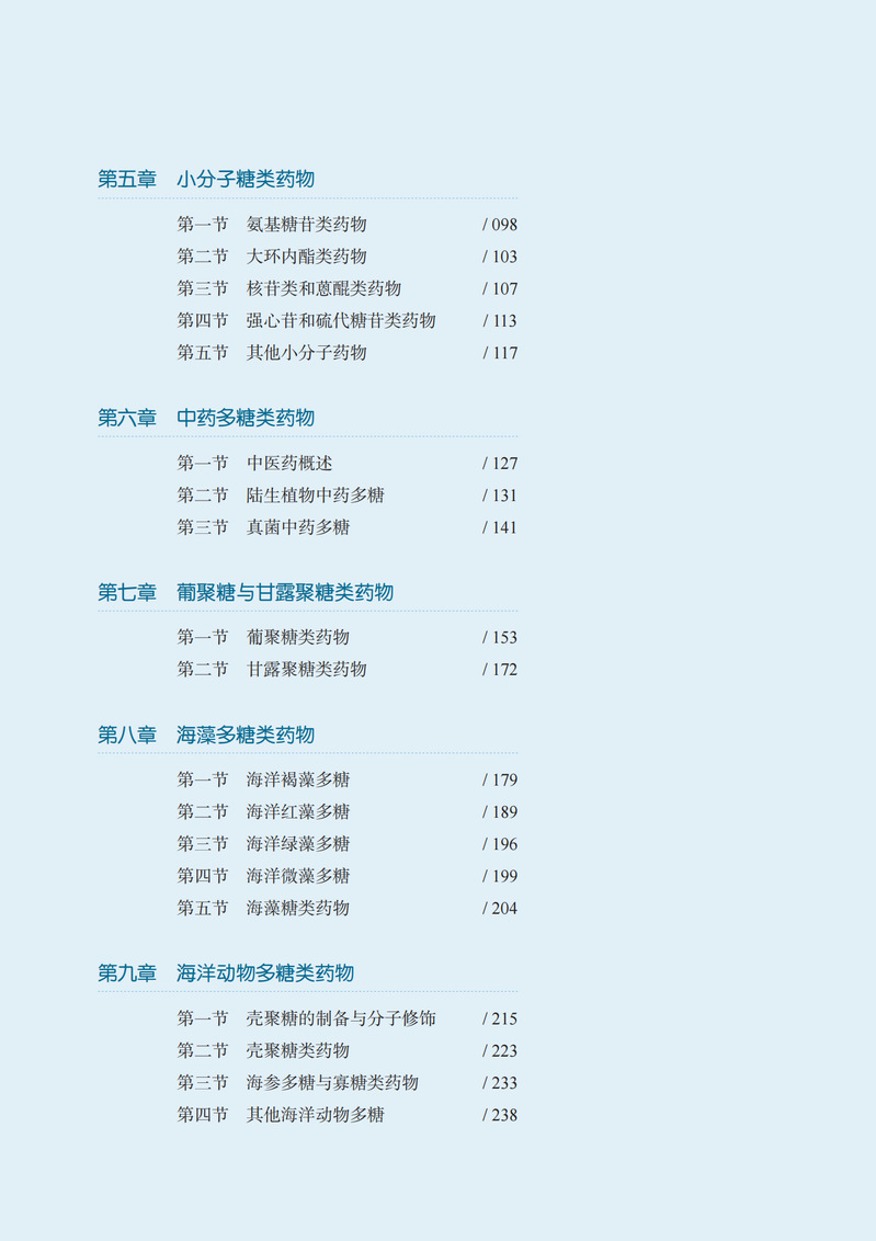 本教材不仅介绍了糖类药物的提取分离、化学与生物合成、结构分析、药理活性和质量控制方法,还介绍了临床广泛应用的小分子糖类药物、糖胺聚糖类药物、糖蛋白和糖脂类药物、糖类疫苗及海洋糖类药物和中药多糖药物,体现了鲜明的海洋特色和民族中药特色。此外,本教材收录了国内外糖化学和糖生物学研究领域新技术,介绍了国际先进的糖芯片、糖链编辑、肠道微生物、糖链测序以及糖生物信息学新技术,内容具有前瞻性和系统性。本教材主要面向药学专业本科生、研究生,也可作为从事糖化学、糖生物学及糖药物研究工作者的参考书。