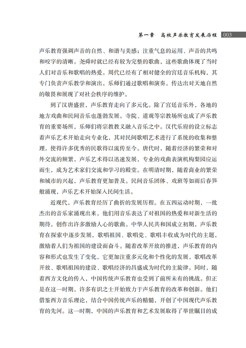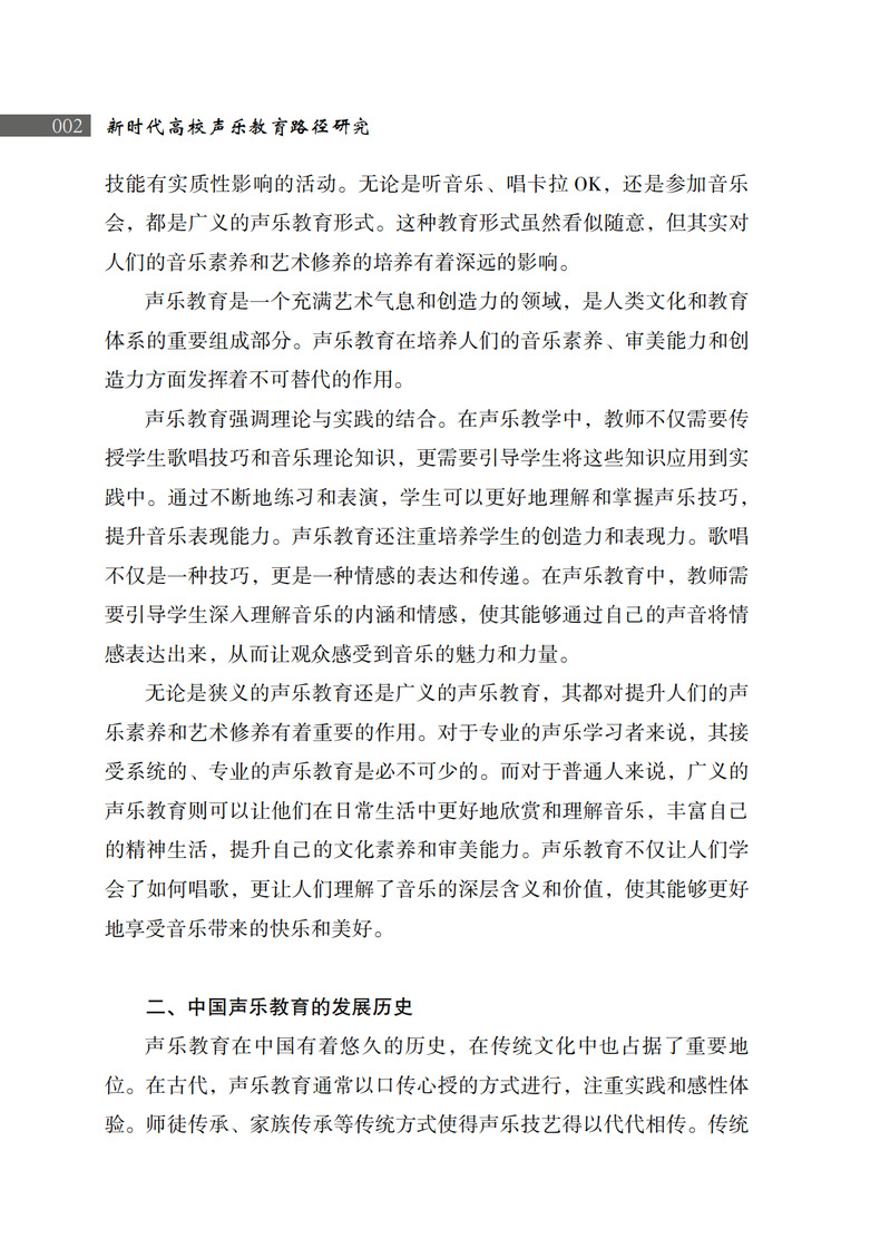 本书对新时代高校声乐教育路径进行了多方面的分析与论述,从不同的方面和角度进行了详细的阐述,主要内容包括高校声乐教育的发展历程、现状与挑战、创新与改革路径以及相关实践案例分析等。作者结合相关案例,深入浅出地展开分析,从过去、现在和未来这一角度进行了详细阐述,并对新时代下高校声乐教育的未来趋势进行了分析与展望。本书的重点是新时代下高校声乐教育的创新与改革。本书的读者对象为高校音乐教育、声乐教育的从业者,以及高校声乐教师与学生。