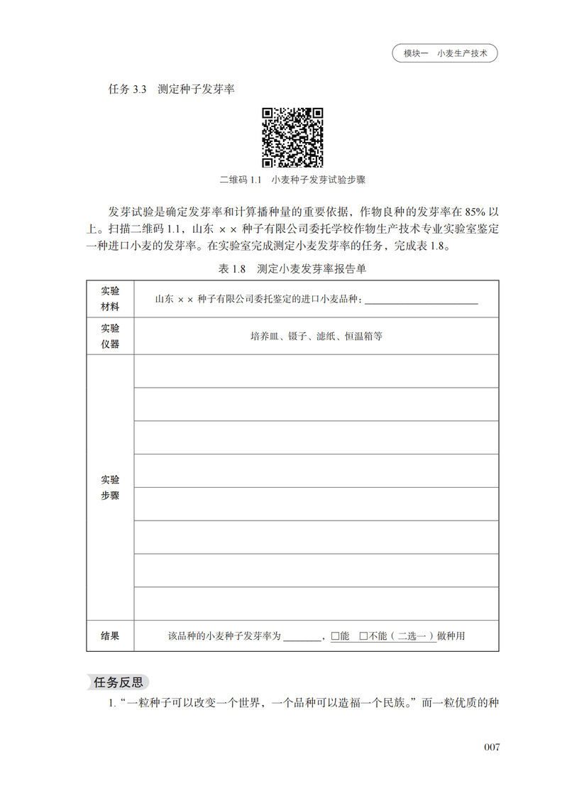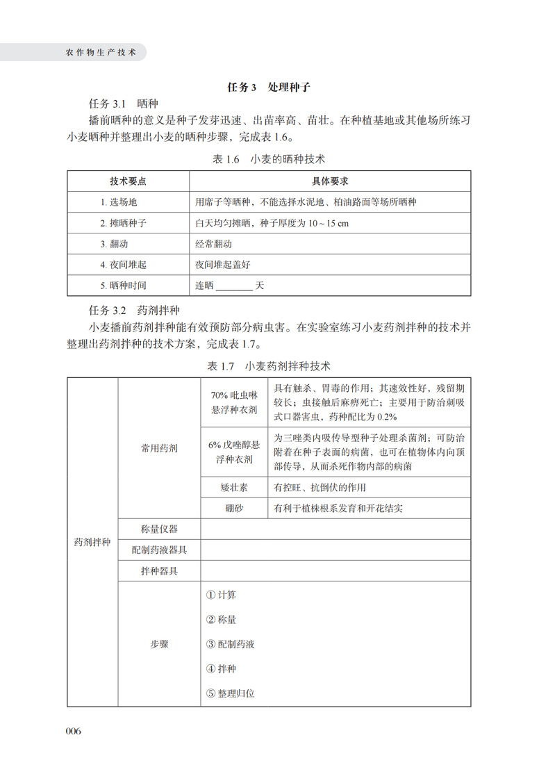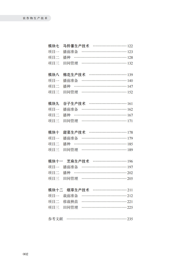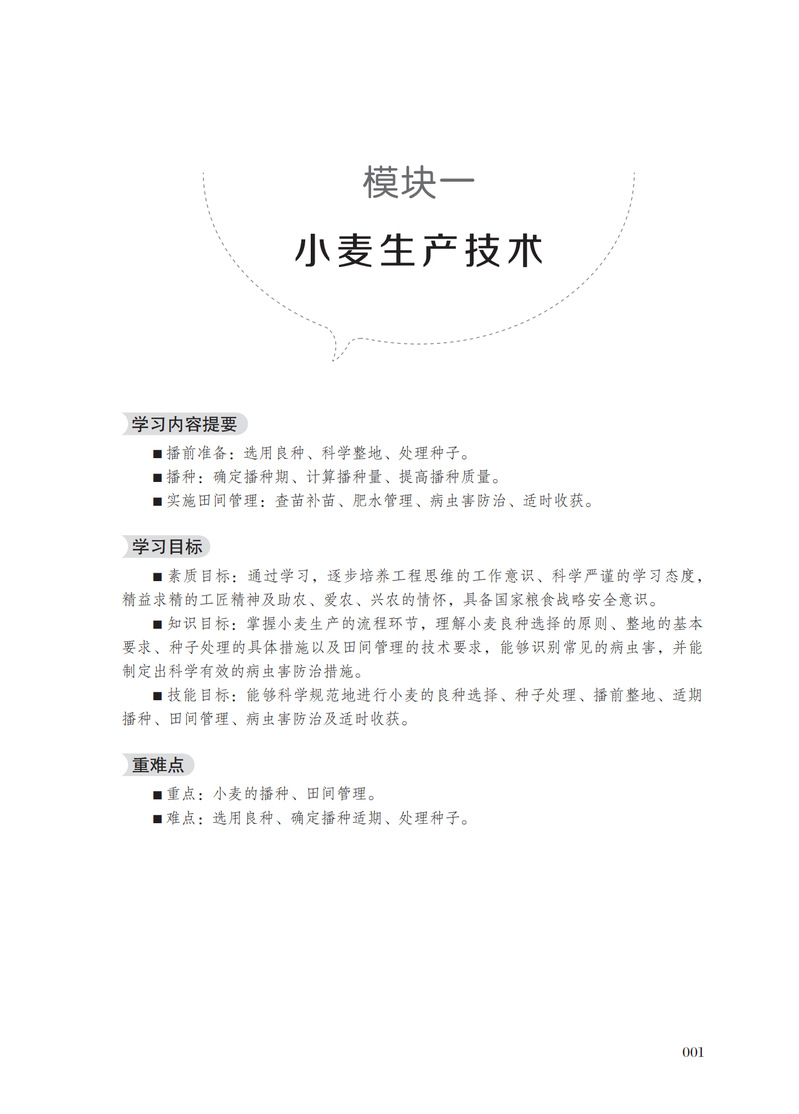 农作物生产技术(北方本)活页教材主要涵盖了北方主要农作物的布局、播前准备、适期播种、田间管理、适时收获等技术和知识。重点内容包括:农作物的品种选择与处理、土壤耕作、合理灌排水、科学施肥,病虫害防治、化控技术应用及适时收获等。该教材适合中等职业教育农业类学生、农业技术人员、农业经理人、农场主等所有从事农作物生产或对农作物生产技术感兴趣的技术人员,他们可以通过此教材提升自己的专业水平,更好地指导农民进行农业生产,提高农作物的产量和质量。