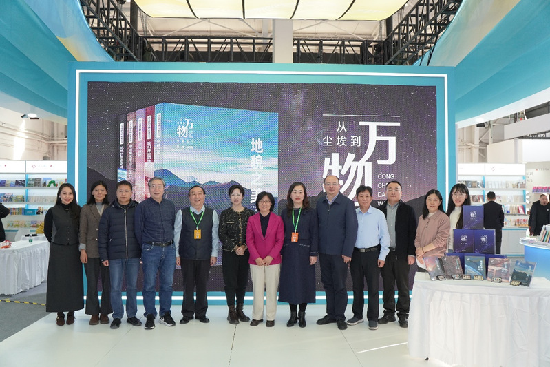 2026年1月8日下午,由中国海洋大学出版社策划出版的“从尘埃到万物”科普丛书新书发布会在北京中国国际展览中心隆重举行。出席本次发布会的领导、嘉宾有:自然资源部中国地质调查局青岛海洋地质研究所副所长、丛书总主编印萍,青岛海洋地质研究所高级工程师、《深海探秘》主编张玉玺,中国科普作家协会海洋科普专业委员会委员、北京电影学院教授李彬,中国地质大学出版社社长江广长,西北农林大学出版社社长张正新,中国石油大学出版社副总编辑郜云飞,中国海洋大学海洋与大气学院教授傅刚,著名文史作家刘宜庆,中国海洋大学出版社社长刘文菁、副社长张殿镇、副总编辑徐永成、责任编辑孙宇菲和付绍瑜等。发布会由中国海洋大学出版社副总编辑纪丽真主持。