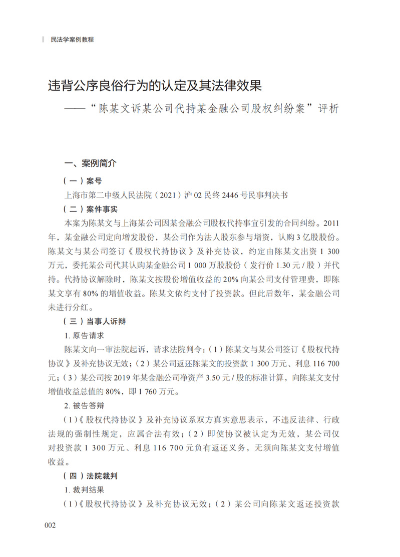 《民法学案例教程》围绕民法典各编的重要制度,精选60个典型案例,按照《民法典》的篇章结构依次展开,每编配备10个典型案例,形成覆盖总则编、物权编、合同编、人格权编、婚约家庭编、继承编、侵权责任编各编的完整案例体系。每个案例评析由案例简介、法律问题、案例简评、参考文献四个部分组成。案例简介再现诉讼,要素齐全、简洁明快;主要法律问题直击核心要点,要言不烦、深入浅出;案例简评以案释法,释法精准、说理深刻。总之,本书集故事性、知识性、实用性为一体,是普法宣传、教学研究、法律实务的必备参考书目。