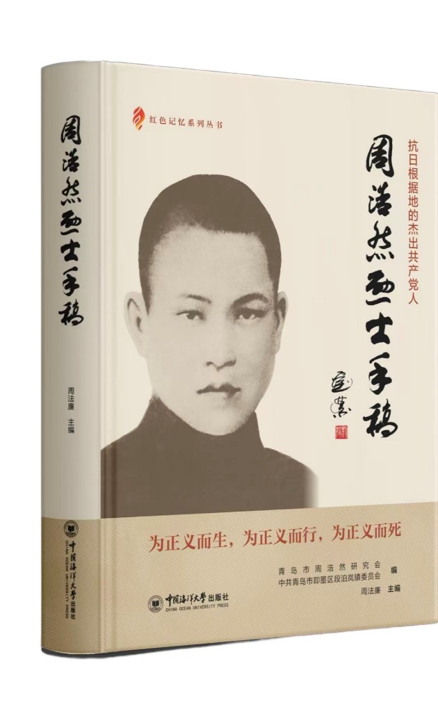 会上,《周浩然烈士手稿》正式发布。该书由青岛市周浩然研究会与中共青岛市即墨区段泊岚镇委员会联合编纂,周浩然的六弟周法廉担任主编。中国海洋大学出版社社长刘文菁在发布会上介绍了书稿的出版过程。她表示,周浩然烈士是中国海洋大学的校友,曾到国立山东大学(今中国海洋大学鱼山校区)中文系做旁听生,该书能在海洋大学出版社出版,出版社全体人员倍感荣幸。该书汇集了周浩然烈士亲笔手稿、书信、日记等珍贵原始资料,出版社与周法廉先生密切协作,克服了手稿残缺、年代久远等困难,确保史料的真实性与完整性。希望这本书的出版,能够让更多的人了解周浩然烈士的英雄事迹,传承浩然正气,汲取精神力量。