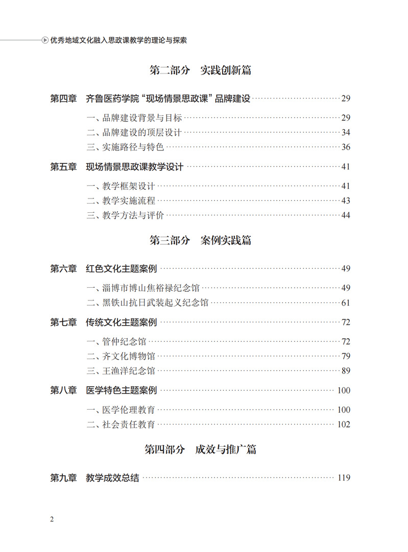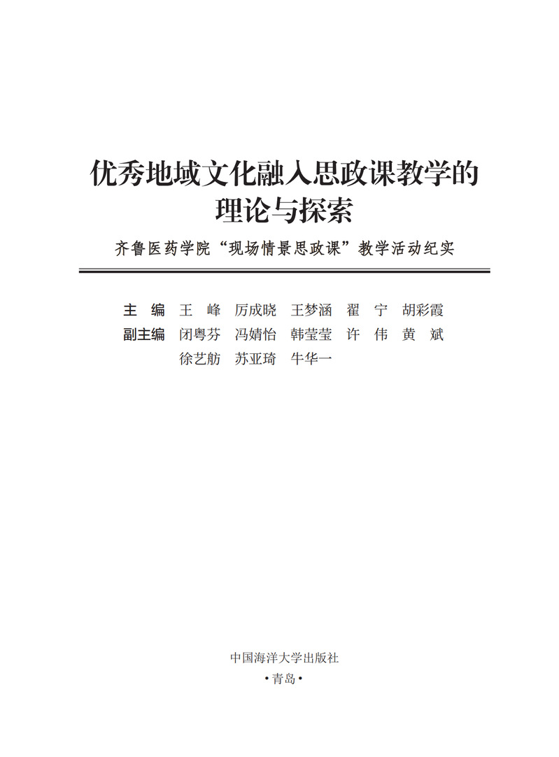 习近平总书记指出:“‘大思政课’我们要善用之,一定要跟现实结合起来。”齐鲁医药学院将优秀地域文化资源与思政教育深度融合,在纪念馆里开展“现场情景思政课”。本书从“现场情景思政课”开展的理论基础、实践创新、案例实践、成效与推广、未来展望等方面,对优秀地域文化融入思政课教学的理论与实践进行了有益探索和总结。齐鲁医药学院“现场情景思政课”的品牌影响力不断提升,其实践经验与成果为高校思政课改革提供了可参考的品牌建设路径。