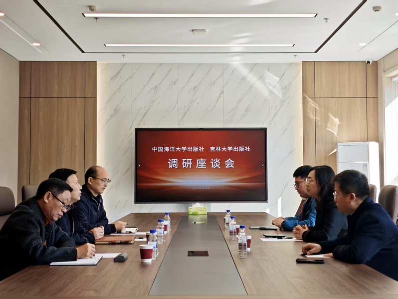 4月8日,刘文菁社长带队,前往吉林大学出版社进行调研交流,旨在进一步加强高校出版社之间的交流与合作,共同探讨新时代背景下大学出版社面临的机遇与挑战。吉林大学出版社董事长、书记迟宪良,总编辑李荣茂,副总经理(副社长)陈龙,中国海洋大学出版社副总编辑徐永成,办公室、总编室主任孙玮参加座谈交流。